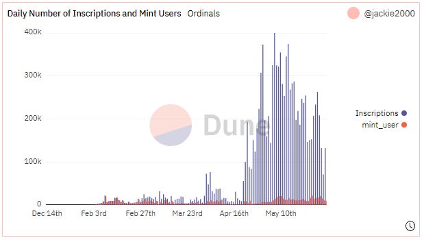 Os NFTs na rede BTC tiveram pequenos picos na última semana, mas mantiveram o mesmo padrão apresentado no último relatório.